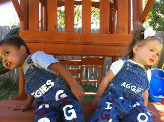 Cousin Abby and Taylor playing with at the cool art table Grandma and Grandpa got!